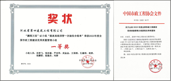 9月18日,公司收到中国市政工程协会《关于公布2023年度全国市政工程建设优秀质量管理小组获奖名单的通知》文件,公司推荐参赛的成果获得一等奖。